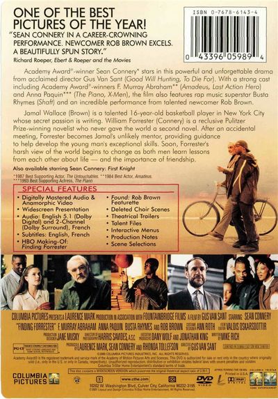 Academy Award®-winner Sean Connery stars in this powerful and unforgettable drama from acclaimed director Gus Van Sant (Good Will Hunting, To Die For). With a strong cast including Academy Award®-winners F. Murray Abraham (Amadeus, Last Action Hero) and Anna Paquin (The Piano, X-Men), the film also features rap music superstar Busta Rhymes (Shaft) and an incredible performance from talented newcomer Rob Brown.Jamal Wallace (Brown) is a talented 16-year-old basketball player in New York City whose secret passion is writing. William Forrester (Connery) is a reclusive Pulitzer Prize-winning novelist who never gave the world a second novel. After an accidental meeting, Forrester becomes Jamal's unlikely mentor, providing guidance to help develop the young man's exceptional skills. Soon, Forrester's harsh view of the world begins to change as both men learn lessons from each other about life - and the importance of friendship. |