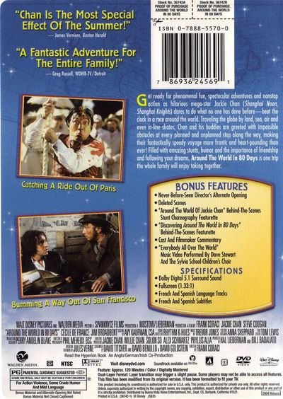 Get ready for phenomenal fun, spectacular adventures and nonstop action as hilarious mega-star Jackie Chan (Shanghai Noon, Shanghai Knights) dares to do what no one has done before - beat the clock in a race around the world. Traveling the globe by land, sea, air and even in-line skates, Chan and his buddies are greeted with impossible obstacles at every planned and unplanned stop along the way, making their fantastically speedy voyage more frantic and heart-pounding than ever! Filled with amazing stunts, humor and the importance of friendship and following your dreams, Around The World In 80 Days is one trip the whole family will enjoy taking together. |