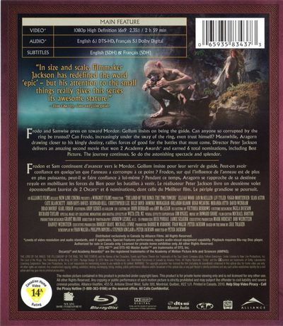 "In size and scale, filmmaker Jackson has redefined the word 'epic' - but his attention to the small things really gives this series its awesome stature." - Tom Charity, TIME OUT FILM GUIDEFrodo and Samwise press on toward Mordor. Gollum insists on being the guide. Can anyone so corrupted by the ring be trusted? Can Frodo, increasingly under the sway of the ring, even trust himself? Meanwhile, Aragorn drawing closer to his kingly destiny, rallies forces of good for the battles that must come. Director Peter Jackson delivers an amazing second movie that won 2 Academy Awards and earned 6 total nominations, including Best Picture. The journey continues. So do the astonishing spectacle and splendor. |