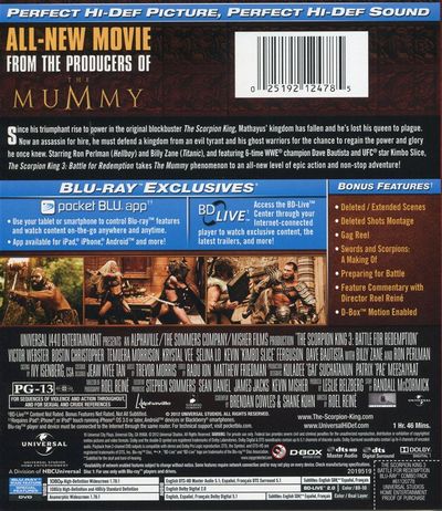 Mathayus has lost his beloved queen and been driven from his former kindom by a virulent plague. Now, an assassin for hire, Mathayus is dispatched by Horus, the King of Egypt, to protect his ally King Ramusan from imminent attack. In return for his services, he is promised Ramusan's daughter Silda in marriage, as well as the legendary Eye of the Gods medallion, which imparts supernatural powers to its wearer. |
