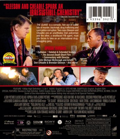 THE GUARD is a comedic, fish-out-of-water tale of murder, blackmail, drug trafficking and rural police corruption. Two cops (Gleeson and Cheadle) one an unorthodox Irish policeman and the other, a straitlaced FBI agent, must join forces to take on an international drug-smuggling gang. |