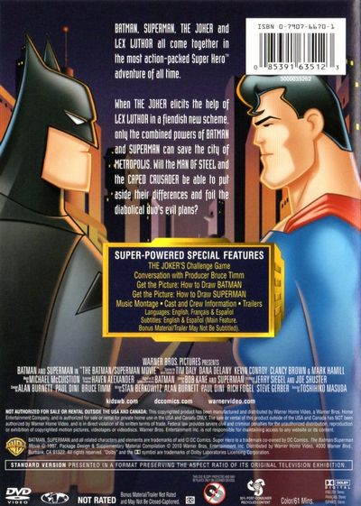 Batman, Superman, The Joker and Lex Luthor all come together in the most action-packed superhero adventure of all time.When The Joker elicits the help of Lex Luthor in a fiendish new scheme, only the combined powers of Batman and Superman can save the city of Metropolis. Will the Man Of Steel and the Caped Crusader be able to put aside their differences and foil the diabolical duo's evil plans? |