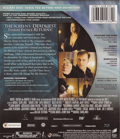 She captivated moviegoers with her raw sensuality and steel heart. Now Sharon Stone is back as the notorious crime novelist, Catherine Tramell. This time she proves to be respected criminal psychologist Dr. Michael Glass' (David Morrissey) deadliest challenge. with professional boundaries blurred by obsession, Dr. Glass is lured into a murderous web of lies and deceit and begins a torrid affair with Tramell that takes him to the point of no return. As their passions rise, so does the body count - and Dr. Glass faces a choice that will change his life forever. |