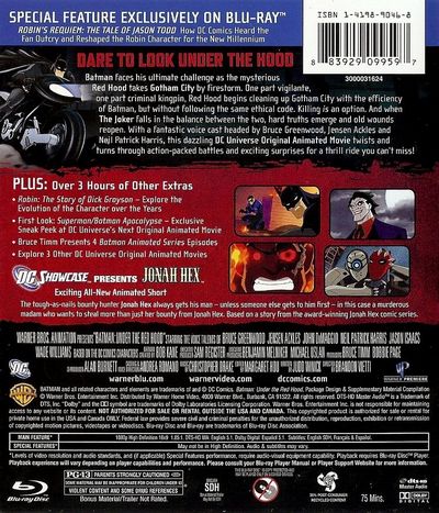Batman faces his ultimate challenge as the mysterious Red Hood takes Gotham City by firestorm. One part vigilante, one part criminal kingpin, Red Hood begins cleaning up Gotham with the efficiency of Batman, but without following the same ethical code. Killing is an option. And when The Joker falls in the balance between the two, hard truths emerge and old wounds reopen. With a fantastic voice cast headed by Bruce Greenwood, Jensen Ackles and Neil Patrick Harris, this dazzling DC Universe Original Animated Movie twists and turns through action-packed battles and exciting surprises for a thrill ride you can't miss! |