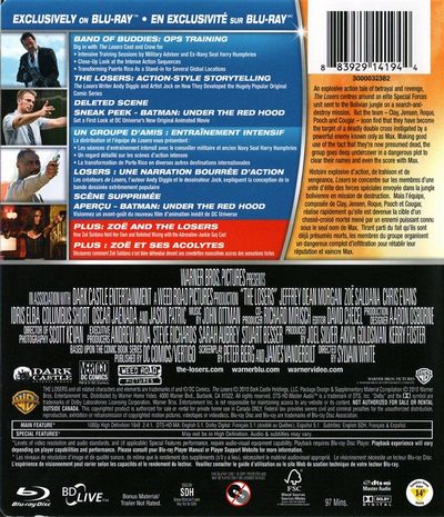 An explosive action tale of betrayal and revenge, The Losers centres around an elite Special Forces unit sent to the Bolivian jungle on a search-and-destroy mission. But the team - Clay, Jensen, Roque, Pooch and Cougar - soon find that they have become the target of a deadly double cross instigated by a powerful enemy known only as Max. Making good use of the fact that they're now presumed dead, the group goes deep undercover in a dangerous plot to clear their names and even the score with Max.--------------------Histoire explosive d'action, de trahison et de vengeance, Losers se concentre sur les membres d'une unité d'élite des forces spéciales envoyée dans la jungle bolivienne en mission de destruction. Mais l'équipe, composée de Clay, Jensen, Roque, Pooch et Cougar, réalise rapidement qu'elle est devenue la cible d'un chassé-croisé mortelmené par un ennemi puissant connu sous le nom de Max. Tirant parti du fait qu'ils sont déjà présumés morts, les membres du groupe organisent un dangereux complot d'infiltration pour rétablir leur réputation et vaincra Max.
