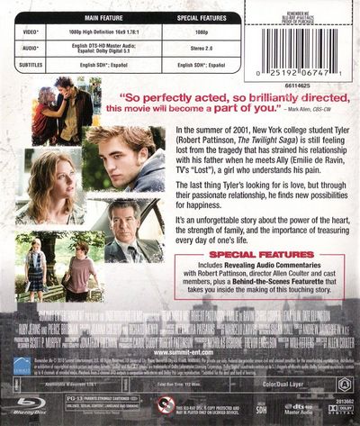 In the summer of 2001, New York college student Tyler (Robert Pattinson, 'The Twilight Saga') is still feeling lost from the tragedy that has strained his relationship with his father when he meets Ally (Emilie de Ravin, TV's "Lost"), a girl who understands his pain.The last thing Tyler's looking for is love, but through their passionate relationship, he finds new possibilities for happiness.It's an unforgettable story about the power of the heart, the strength of family, and the importance of treasuring every day of one's life. |