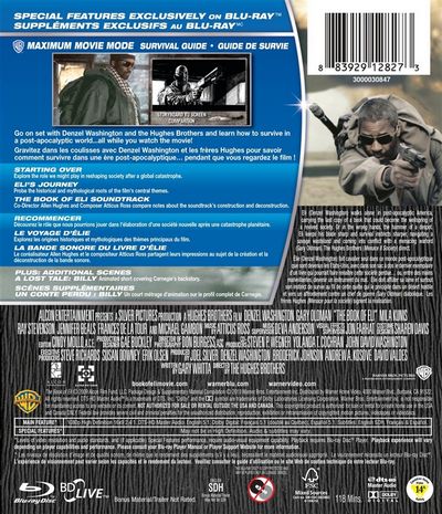 Eli walks alone in post-apocalyptic America, carrying the last copy of the book that could become the wellspring of a revived society. Or in the wrong hands, the hammer of a despot. Eli keeps his blade sharp and survival instincts sharper, navigating a savage wasteland and coming into conflict with a menacing warlord (Gary Oldman). The Hughes Brothers (Menace II Society) direct.Elie (Denzel Washington) fait cavalier seul dans ce monde post-apocalyptique que sont devenus les États-Unis, avec dans son sac à dos le dernier exemplaire d’un livre qui pourrait faire renaître cette société perdue… où, entre des mains malveillantes, devenir un instrument du mal. Elie doit affuter sa lame et surtout son instinct de survie au fil de cette quête qui le précipite dans un désert hostile et vers un affrontement contre un chef de guerre (Gary Oldman) diabolique. Les frères Hughes (Menace pour la Société) signent la réalisation. |