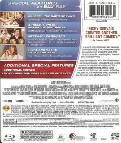 In a world where the human race has never evolved the ability to lie, a man who suddenly discovers how will change the world, With this superpower, he can get anything he wants. Well, nearly everything.Ricky Gervais (Extras, BBC's The Office) displays his hilariously deadpan acting talents in a comedy invention he co-wrote and co-directed. With a star-studded cast including Jennifer Garner, Louis C. K. and Rob Lowe, plus cameos by Tina Fey and Jonah Hill, it's "explosively funny" according to New York critic David Ededstein. Believe it. |
