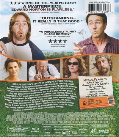 Tim Blake Nelson's Leaves of Grass is a comic thriller seen through the dual perspectives of identical twins Bill and Brady Kincaid (both played by two-time Academy Award® nominee Edward Norton). Bill, a classics professor at Brown University, returns home upon news of his twin's murder in a drug deal gone awry. Bill quickly learns that Brady's death has been grossly exaggerated, as he's swept up into one of his brother's crazy schemes. Alongside his eccentric mother (Susan Sarandon) and a beautiful woman named Janet (Kerl Russell), Bill participates in his brother's wild plan, one that leads him on a twisted path filled with unique characters and life's most challenging questions. Also starring Richard Dreyfuss and writer-director Nelson, Leaves of Grass merges crime drama, drug comedy and classical philosophy, as it attempts to answer one of the oldest questions in the world: What does it truly mean to be happy? |