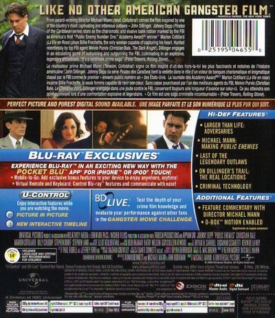 From award-wining director Michael Mann (Heat, Collateral) comes the film insired by one of the country's most captivating and infamous outlaws - John Dillinger. Johnny Depp (Pirates of the Caribbean series) stars as teh charismatic and elusive bank robber marked by the FBI as America's first "Public Enemy Number One." Academy Award winner Marion Cotillard (La Vie en Rose) plays billie Frechette, the only woman capable of capturing his heart. Hunted relentlessly by top FBI agent Melvin Purvis (Christian Bale, The Dark Knight), Dillnger engages in an escalating game of outrunning and outgunning the FBI, culminating in an explosive, legendary showdown. "It's a landmark crime saga" (Peter Travers, Rolling Stone). |