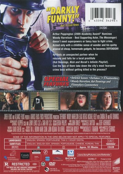Arthur Poppington (2009 Academy Award® Nominee Woody Harrelson - Best Supporting Actor, The Messenger) doesn't need superpowers or fancy toys to fight crime. Armed only with a childlike sense of wonder and his quirky arsenal of cheap, homemade gadgets, he becomes DEFENDOR!He finds an unexpected partner when he rescues and falls for a local prostitute (Kat Dennings, Nick and Norah's Infinite Playlist). Can the two of them take down the city's most fearsome crime boss without getting killed in the process? |