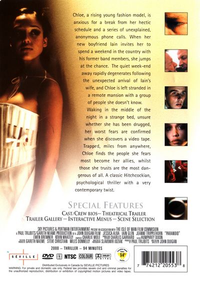 Chloe, a rising young fashion model, is anxious for a break from her hectic schedule and a series of unexplained, anonymous phonecalls. When her new boyfriend invites her to spend a weekend in the country with his former band members, she jumps at the chance. The quiet weekend away rapidly degenerates following the unexpected arrival of his wife and Chloe is left stranded in a remote mansion with a group of people she doesn't know. Trapped , miles from anywhere, Chloe finds the people she fears most become her allies, whilst those she trusts are the most dangerous of all. A classic Hitchcockian psychological thriller with a very contemporary twist. |