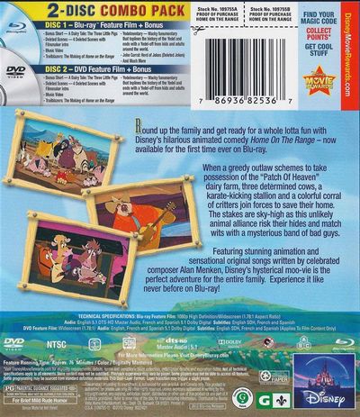 Round up the family and get ready for a whole lotta fun with Disney's hilarious animated comedy Home On The Range - now available for the first time ever on Blu-ray.When a greedy outlaw schemes to take possession of the "Patch Of Heaven" dairy farm, three determined cows, a karate-kicking stallion and a colorful corral of critters join forces to save their home. The stakes are sky-high as this unlikely animal alliance risk their hides and match wits with a mysterious band of bad guys.Featuring stunning animation and sensational original songs written by celebrated composer Alan Menken, Disney's hysterical moo-vie is the perfect adventure for the entire family. Experience it like never before on Blu-ray! |