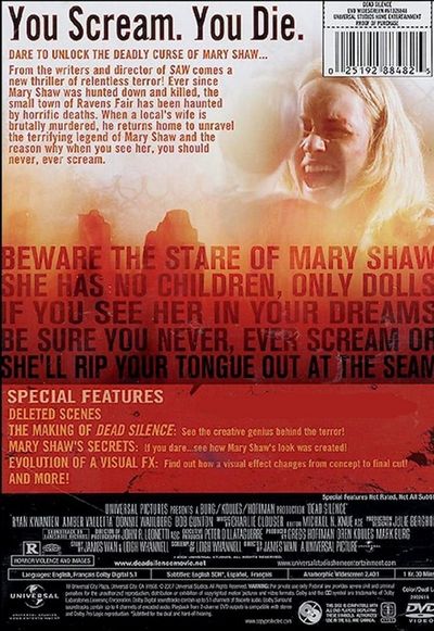 You Scream. You Die.Dare to unlock the deadly curse of Mary Shaw...From the writers and director of Saw comes a new thriller of relentless terror! Ever since Mary Shaw was hunted down and killed, the small town of Ravens Fair has been haunted by horrific deaths. When a local's wife is brutally murdered, he returns home to unravel the terrifying legend of Mary Shaw and the reason why when you see her, you should never, ever scream. |