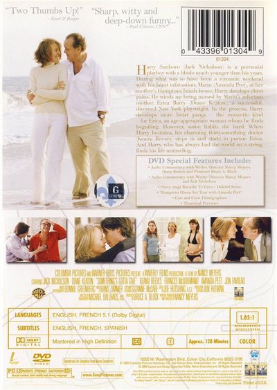 Harry Sanborn (Jack Nicholson) is a perennial playboy with a libido much younger than his years. During a romantic weekend with his latest infatuation, Marin (Amanda Peet), at her mother's Hamptons beach house, Harry develops chest pains. He winds up being nursed by Marin's reluctant mother, Erica Barry (Diane Keaton)-a successful, divorced New York playwright. In the process, Harry develops more heart pangs-the romantic kind-for Erica, an age appropriate woman whom he finds beguiling. When Harry hesitates, his charming thirty-something doctor (Keanu Reeves) steps in and starts to pursue Erica. And Harry, who has always had the world on a string, finds his life unraveling. |