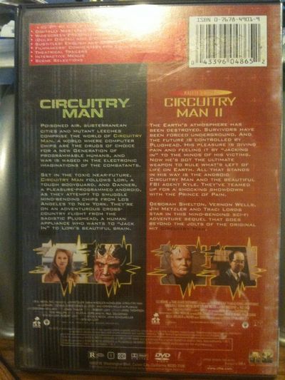 Circuitry Man:Poisoned air, subterranean cities and mutant leeches comprise the world of Circuitry Man. A world where computer chips are the drugs of choice for a new generation of programmable humans, and war is waged in the electronic imaginations of the combatants.Set in the toxic near-future, Circuitry Man follows Lori, a tough bodyguard, and Danner, a pleasure-programmed android, as they attempt to smuggle mind-bending chips from Los Angeles to New York. They're on an adventurous cross-country flight from the sadistic Plughead, a human appliance who wants to "Jack In" to Lori's beautiful brain.Circuitry Man II:The Earth's atmosphere has been destroyed. Survivors have been forced underground, and the future is controlled by Plughead. His pleasure is giving pain and feeling it by "Jacking In" to the minds of his victims. Now he's got the ultimate weapon to rule what's left of life on earth. All that stands in his way is the android Circuitry Man and the beautiful FBI agent Kyle. They've teamed up for a shocking showdown with the prince of pain.Deborah Shelton, Vernon Wells, Jim Metzler and Traci Lords star in this mind-bending SCI-FI adventure sequel that goes beyond the jolts of the original hit.