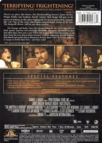 There's no place like home... for bloodcurdling horror! James Brolin, Margot Kidder and Academy Award winner Rod Steiger fall prey to the powers of darkness in this spine-tingling tale of a house possessed by unspeakable evil. One of the most talked-about haunted-house stories of all time, The Amityville Horror will hit you where you live.For George and Kathy Lutz, the colonial home on the river's edge seemed ideal: quaint, spacious and amazingly affortable. Of course, six brutal murders had taken place there just a year before, but houses don't have memories... or do they? Soon the Lutz dream house becomes a hellish nightmare, as walls begin to drip blood and satanic forces threaten to destroy them. Now the Lutzes must try to escape or forfeit their lives - and their souls! |