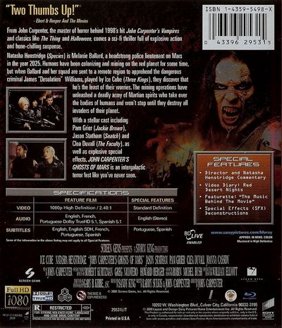 From John Carpenter, the master of horror behind 1998's hit John Carpenter's Vampires and classics like The Thing and Halloween, comes a sci-fi thriller full of explosive action and bone-chilling suspense.Natasha Henstridge (Species) is Melanie Ballard, a headstrong police lieutenant on Mars in the year 2025. Humans have been colonizing and mining on the red planet for some time, but when Ballard and her squad are sent to a remote region to apprehend the dangerous criminal James "Desolation" Williams, played by Ice Cube (Three Kings), they discover that he's the last of their worries. The mining operations have unleashed a deadly army of Martian spirits who take ove the bodies of humans and won't stop untill they destroy all invaders of their planet.With a stellar cast including Pam Grier (Jackie Brown), Jason Statham (Snatch) and Clea Duvall (The Faculty), as well as explosive special effects, JOHN CARPENTER'S GHOSTS OF MARS is an intergalactic terror fest like you've never seen. |