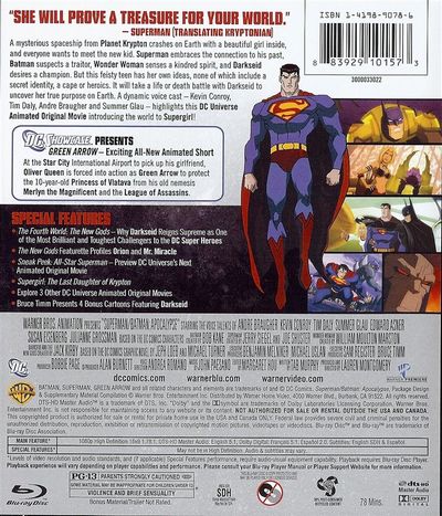 A mysterious spaceship from Planet Krypton crashes on Earth with a beautiful girl inside, and everyone wants to meet the new kid. Superman embraces the connection to his past, Batman suspects a traitor, Wonder Woman senses a kindred spirit, and Darkseid desires a champion. But this feisty teen has her own ideas, none of which include a secret identity, a cape or heroics. It will take a life or death battle with Darkseid to uncover her true purpose on Earth. A dynamic voice cast – Kevin Conroy, Tim Daly, Andre Braugher and Summer Glau – highlights this DC Universe Animated Original Movie introducing the world to Supergirl! |