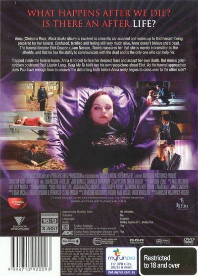 After a horrific car accident, Anna (Ricci) wakes up to find the local funeral director Eliot Deacon (Neeson) preparing her body for her funeral. Confused, terrified and feeling still very much alive, Anna doesn't believe she's dead, despite the funeral director's reassurances that she is merely in transition to the afterlife. Eliot convinces her he has the ability to communicate with the dead and is the only one who can help her. Trapped inside the funeral home, with nobody to turn to except Eliot, Anna is forced to face her deepest fears and accept her own death. But Anna's grief-stricken boyfriend Paul (Long) still can't shake the nagging suspicion that Eliot isn't what he appears to be. As the funeral nears, Paul gets closer to unlocking the disturbing truth, but it could be too late; Anna may have already begun to cross over the other side.