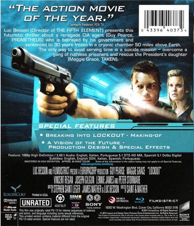 Luc Besson (Director of The Fifth Element) presents this futuristic thriller about a renegade CIA agent (Guy Pearce, Prometheus) who is betrayed by his government and sentenced to 30 years frozen in a cryonic chamber 50 miles above Earth. The only way to avoid serving time is a suicide mission - overcome a gang of ruthless prisoners and rescue the President's daughter (Maggie Grace, Taken). |