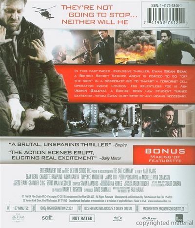 In this fast-paced, explosive thriller, Ewan (Sean Bean) a British Secret Service Agent is forced to go "off the grid" in a desperate bid to thwart a terrorist cell operating inside London. His relentless foe is Ash (Abhin Galeya), a British born law student turned extremist, whom Ewan must stop by any means necessary. |