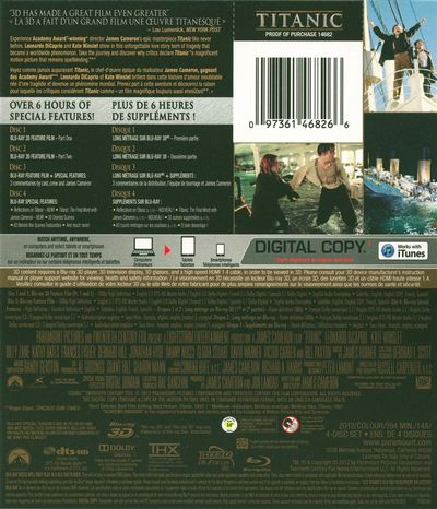 Experience Academy Award-winning director James Cameron's epic masterpiece Titanic like never before. Leonardo DiCaprio and Kate Winslet shine in this unforgettable love story born of tragedy that became a worldwide phenomenon. Take the journey and discover why critics declare Titanic "a magnificent motion picture that remains spellbinding."**Voyez comme jamais auparavant Titanic, le chef-d'oeuvre épique du réalisateur James Cameron, gagnant des Academy Award. Leonardo DiCaprio et Kate Winslet brillent dans cette histoire d'amour inoubliabl née d'une tragédie et devenue un phénomène mondial. Prenez part à cette aventure et découvrez la raison pour laquelle les critiques considèrent Titanic comme « un film magnifique toujours aussi envoûtant**. »**Roger Ebert, Chicago Sun-Times |