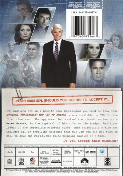 A deranged ex-IMFer targets retired IMF agents, killing them and framing Jim Phelps for the crimes. The IMF gives Jim only a little time to prove his innocence before they must turn him over to the authorities.