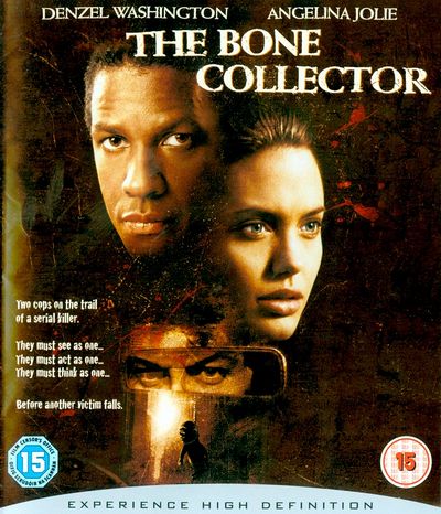 A quadriplegic ex-forensics expert, Lincoln Rhyme (Denzel Washington) and a rookie patrol cop, Amelia Donaghy (Angelina Jolie), team up to solve a string of murders all connected to one killer by his signature: a single shard of bone is removed from each of the victims. Rhyme is bed-ridden, but communicates with Amelia via phone as she examines the various crime scenes and collects evidence and reports back to him.The killer poses as a New York taxi driver, and abducts and kills those who get in his taxi. The first two victims are a married couple named Alan and Lindsay Rubin, who get a taxi home but then find themselves kidnapped by the killer. Amelia finds Alan's body buried in a Civil War-era railroad bed. She also finds a piece of shellfish, which eventually leads Amelia - working with Rhyme - to Alan's wife, and a scrap of paper. The detectives find Mrs Rubin, too late, at a steam junction in a below ground services area of a building in the financial district, secured at the mouth of a pipe which emits steam using old handcuffs or shackles. She has been scalded to death from the steam. The killer has also removed a bit of flesh and bone from her arm. Amelia finds another scrap of paper at the scene.The killer then abducts an NYU student. He is taken to a derelict slaughterhouse where he is tied to a pole and gutted with a knife, and left for rats to feed on. Amelia and Rhyme, using the clue left by the killer at the scene of Lindsay Rubin's death (rat hairs embedded in a bone from a cow's body), find the victim, but again too late to save him. Again, the killer has removed a piece of the victim's bone. Amelia is able to collect the evidence, including another scrap of paper. The pressure of the tense investigation and bureacratic challenges to both Amelia's and Rhyme's involvement with the case are having serious impacts on Rhyme's health and stability.After piecing together the message the killer was sending using the scraps of paper, Amelia and Rhyme are led to an old book of short stories, which in turn leads them to the killer's next victims, a grandfather and granddaughter tied to a pier as the tide rises. The girl is rescued, but her grandfather dies. At the scene, Amelia finds another bone, an old police badge, and an old subway map. These clues, and an earlier clue left by the killer at the scene of Mrs Rubin's death (asbestos) lead Amelia to an abandoned subway station, in which Amelia sees some numbers which have been tampered with to spell out Rhyme's police badge number. Amelia then figures out that the bone collector is after Rhyme.The bone collector arrives at Rhyme's house, and after killing Rhyme's nurse Thelma and Captain Cheney (Michael Rooker) it is revealed that he is the medical technician who cares for Rhyme's medical equipment. The technician, Richard, is an ex-forensic cop who wants revenge because in the past, Rhyme's testimony helped convict the killer of planting false evidence at crime scenes. The result is that the killer was brutalized in prison and his life ruined. Despite the helpless state he is in, Rhyme manages to jam the killers hand by flapping his bed horizontal, and in struggle to free himself, the killer pulls Rhyme with him and they both collapse to the floor. Rhyme then manages to bite the killer in the neck, causing massive bleeding (in fact, in the novel, Rhyme kills him by severing off his spinal cord). Richard once again manages to free himself, grabbing a large knife and about to end Rhyme's life, Amelia suddently arrives at the apartment with a gun, killing him before he has a chance to deliver the fatal stab. The film ends at a Christmas celebration at Rhyme's apartment. Rhyme, having given up his plans to end his life by suicide, faces his sister and niece coming to visit him along with Amelia, Paulie and his family, Eddie and his mother, and Lincoln's new nurse.