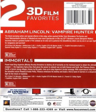 The blood-pumping action and special effects in this edgy, action packed thriller from filmmakers Tim Burton and Timur Bekmambetov (Director of Wanted) are even more spectacular on Blu-rat 3D included in this 3-disc set is an exclusive graphic novel prequel about the origin of vampires in America, a featurette aboutthe axe-fighting choreography and much more.Abraham Lincoln (Benyamin Walker) becomes history's greatest hunter of the undead as he sets out to pulverize the bloodthirsty killers one by one in epic fight for vengeance amd survival!!! |
